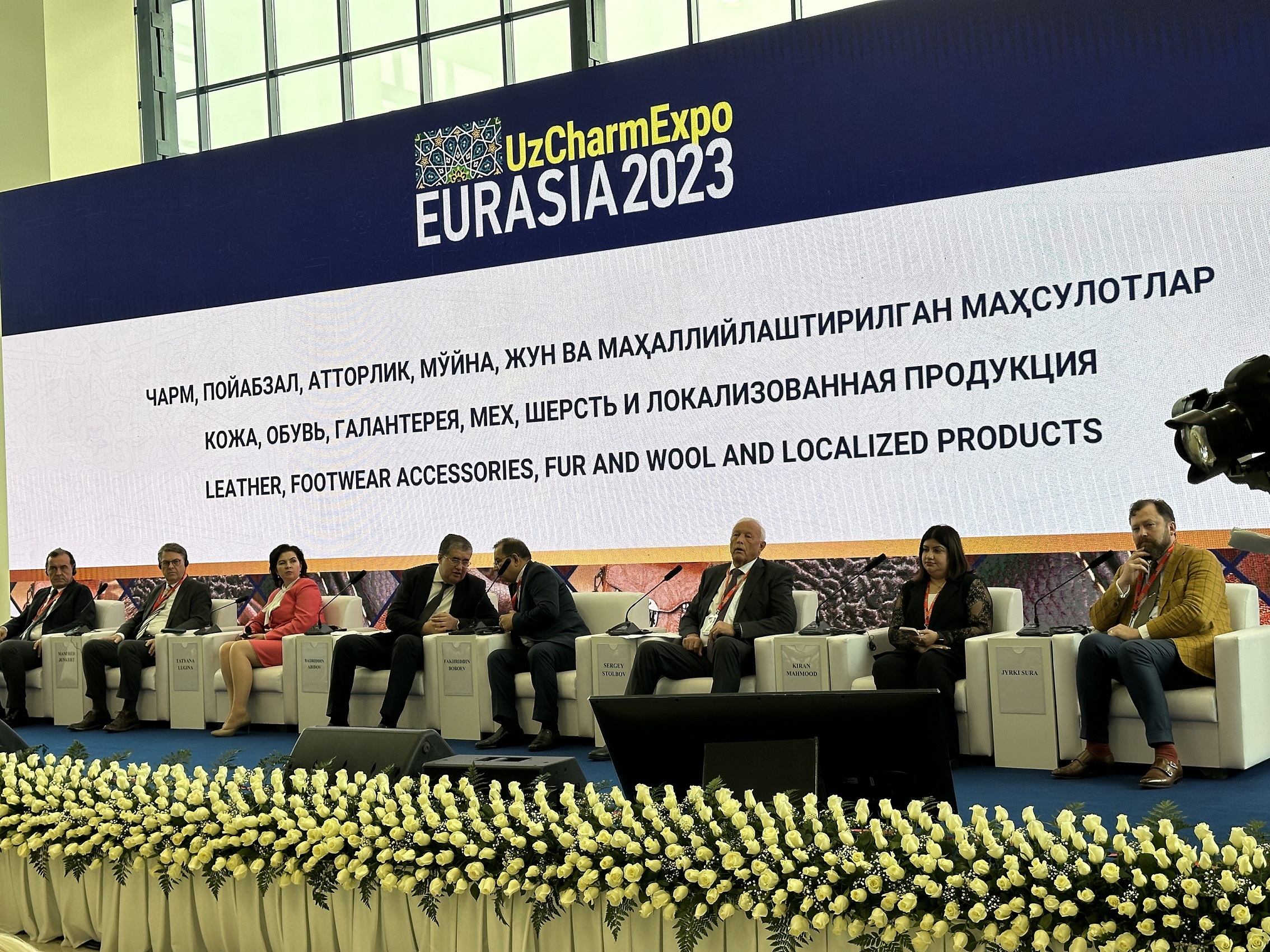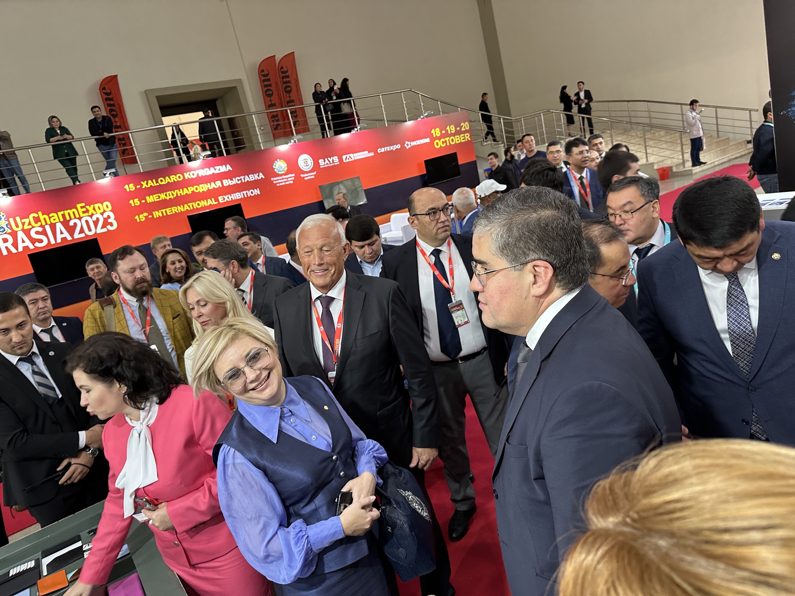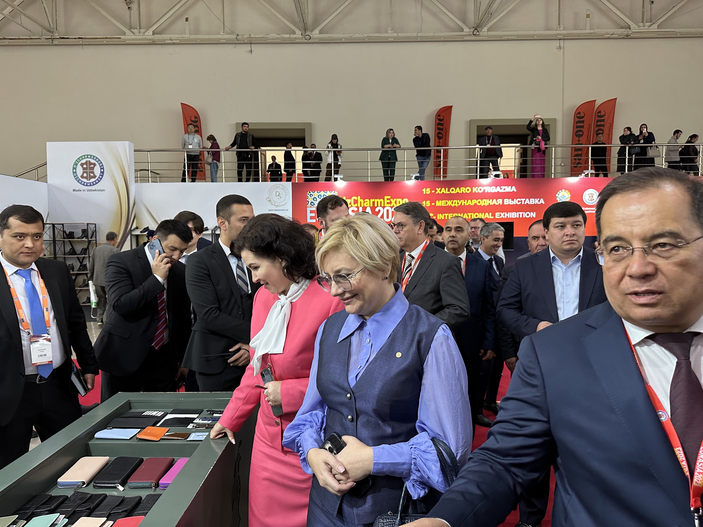 18.10.2023 г.18 октября 2023 г. Чрезвычайный и Полномочный Посол Республики Беларусь в Республике Узбекистан Леонид Маринич совместно с Председателем концерна «Беллегпром» Татьяной Лугиной приняли участие в торжественном открытии 7-й Международной выставки текстильной и модной индустрии «UzTextileExpo Autumn 2023», а также 15-й Международной выставки-ярмарки изделий из кожи, меха, обуви и галантереи «UzCharmExpo EURASIA 2023».
