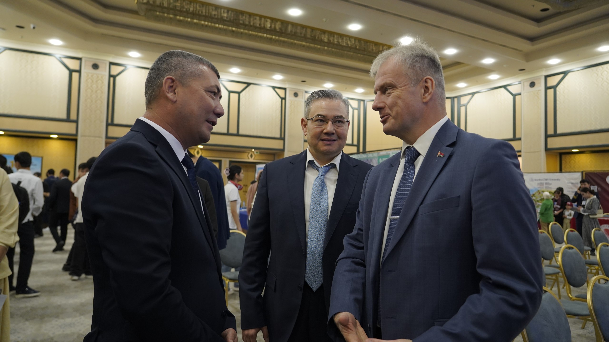 В ходе осмотра выставки А.Огородников обменялся мнениями с заместителем Министра дошкольного и школьного образования Республики Узбекистан Фарходом Бокиевым и руководителем выставочного проекта Рустамом Сайдуллаевым. Посол также посетил стенд БНТУ, ознакомился с образовательными программами и совместными проектами, реализуемыми с партнерами в Узбекистане.
