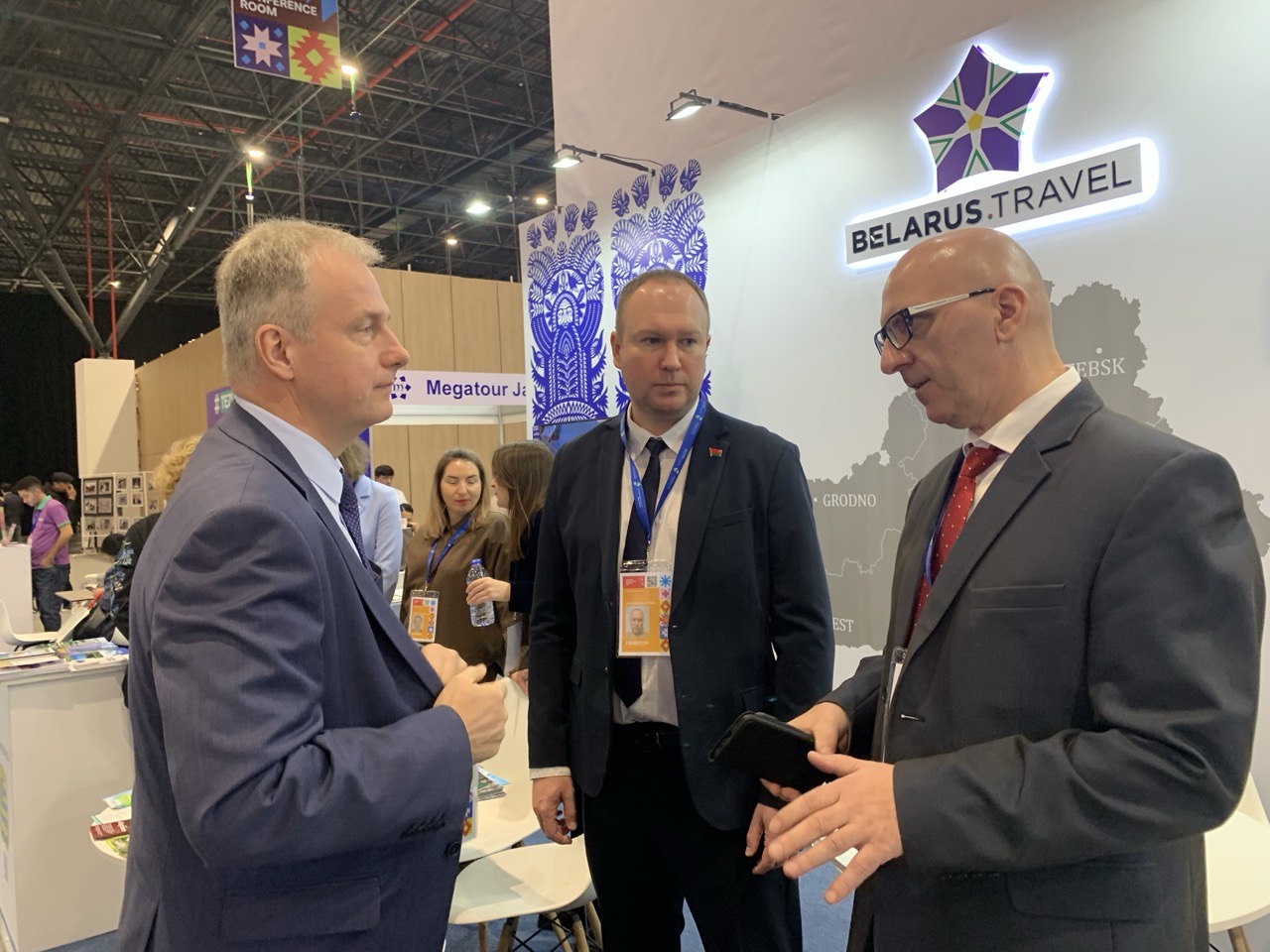 Посол Беларуси А.Огородников вместе с председателем Комитета по туризму Республики Узбекистан Умидом Шадиевым и другими почетными гостями ярмарки посетили белорусский стенд, ознакомились с экспозицией и актуальными предложениями белорусских регионов и туркомпаний, обменялись мнениями с белорусскими экспонентами о перспективных направлениях сотрудничества.