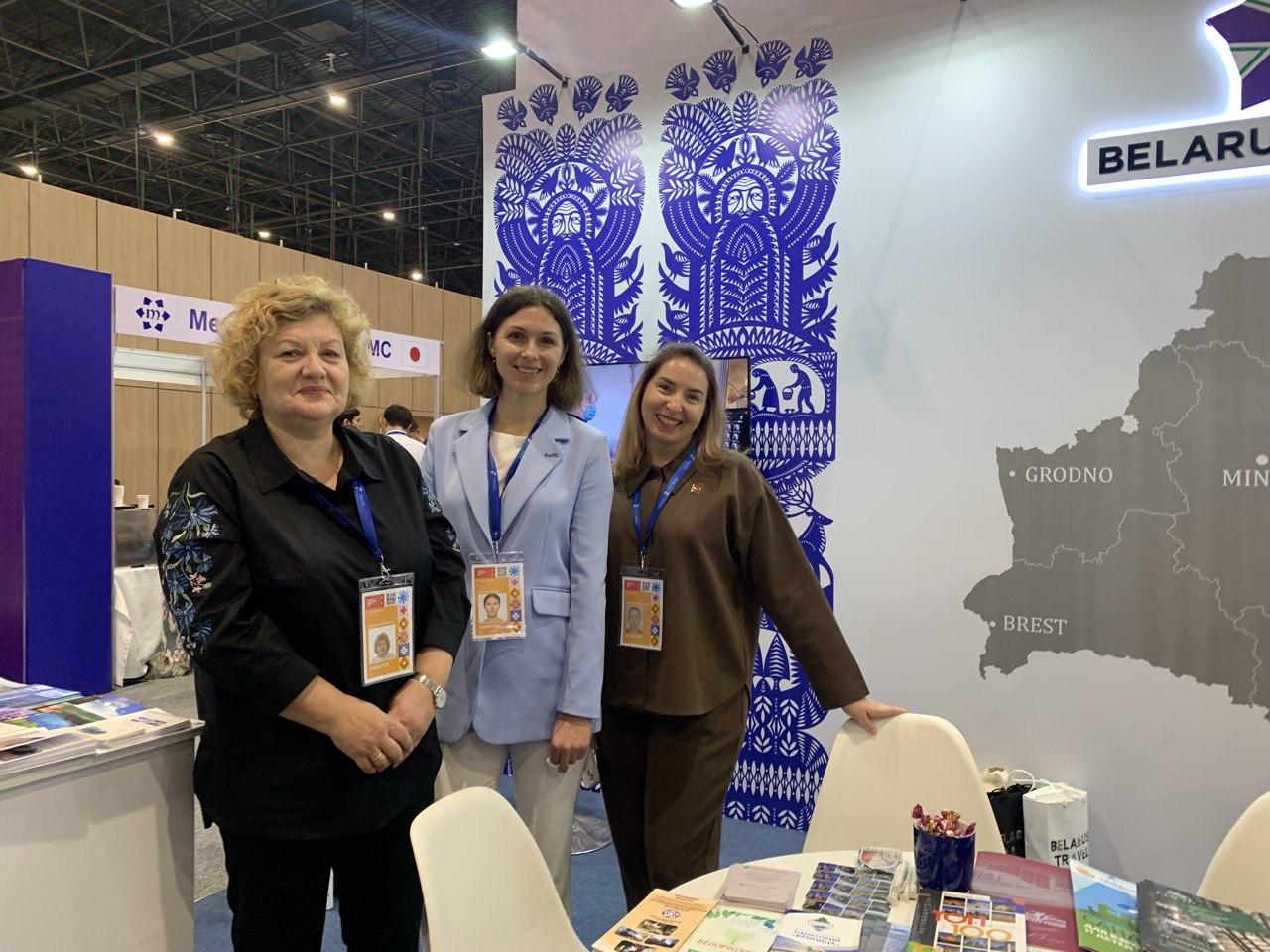 На белорусском стенде, который пользуется популярностью у посетителей выставки, широко представлен туристический потенциал Республики Беларусь. В числе участников – КУП «Бизнес-центр СТОЛИЦА», сеть гостиниц «Виктория», Главное управление спорта и туризма Минского облисполкома, Туристический информационный центр «Регион Могилев» и ОАО «Минотель».